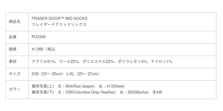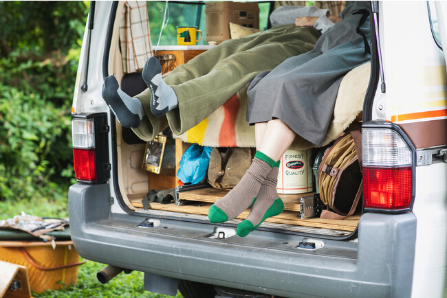 キャンプはもちろん登山や普段使いにも活躍するアウトドアブランドならではのリブソックスをYURIEさんらしい配色でラインナップ。