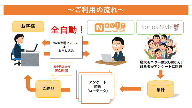「1000人アンケート」とは、ナビットが運営する「Sohos-Style」へ登録している全国約63,400人の調査モニターを対象に、性別、年齢、居住地、属性など実態の明らかなモニターを絞り込んでアンケートを実施出来るサービスです。