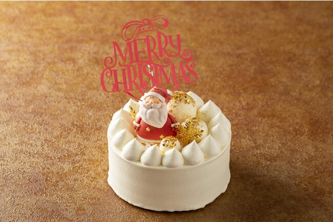 ココナッツの花の蜜がエキゾチックに香るピスタチオミルクのカスタードクリームと、レモンが香るスポンジがふんわりと口どけ良く仕上げられリッチな味わいに。トップには、サンタクロースと並ぶ、カカオパルプとホワイトチョコのムースボールがゴールドに煌めきます。ボールの中にはラズベリー&ローズのソースが華やかに香り、パーティーの演出をさらに盛り上げるクリスマスケーキです。