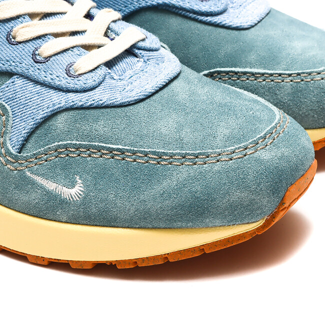 今回発売される「NIKE AIR MAX 1 PRM “Dirty Denim”」は、ヴィンテージジーンズを彷彿とさせる淡いブルーのデニム素材とレザー素材をアッパー部分にパッチワーク。AIR MAX 1らしいスポーティーかつポップな印象はそのままに、ヴィンテージアイテムのような繊細な空気感をまといながらも堂々とした存在感を放つ1足に仕上がっている。
