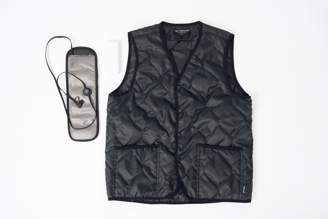 特徴1:薄手なのに暖かいから着ぶくれしない「電熱式防寒ベスト」で冬でもスタイリッシュにポカポカ