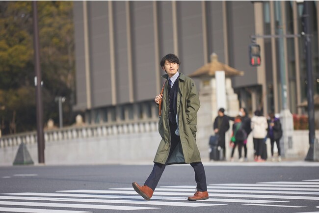 雨具のプロフェッショナル、カジメイクのノウハウと最新技術を結集し、毎日を豊かにしてくれる理想のコートを考えた結果生まれたのが「オールシーズン ステンカラーコート & 高機能 電熱防寒ベスト」です。