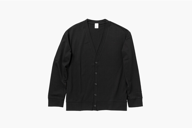 襟元はシンプルなVネック仕様です。袖まわりはゆったりとしたデザインで、中に着込むこともできるので通年でご着用いただけます。