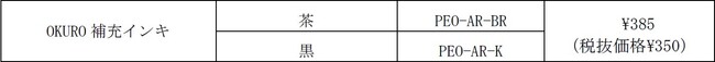 ※OKURO 補充インキ 茶・黒 各¥385(税込価格)