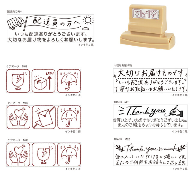 荷物にメッセージを添える際、自分の字に自信がないという方でもスタンプを押すだけで簡単に相手への思いやりを表現することができます。