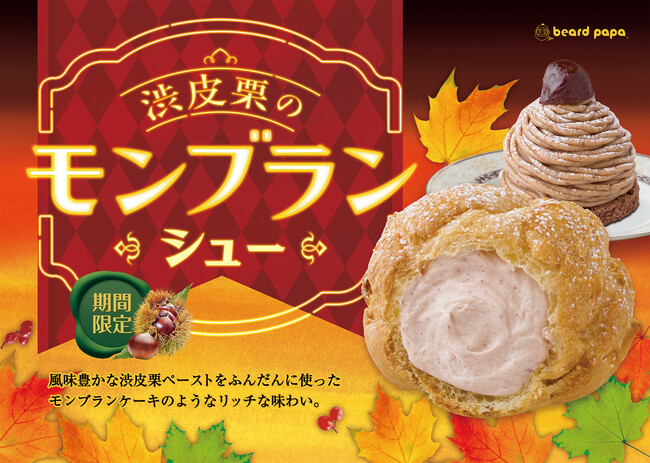 株式会社麦の穂(本社:大阪府大阪市北区、代表取締役:杉内 健吉)は、2022年10月1日(土)よりシュークリーム専門店ビアードパパにて“渋皮栗のモンブランシュー”を期間限定で販売いたします。