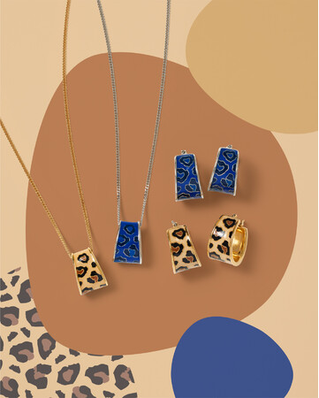 艶やかなエポキシ樹脂で表現した大胆なレオパール(豹)柄が装いに遊び心をプラスする、年齢性別を問わないニュートラルなデザイン。