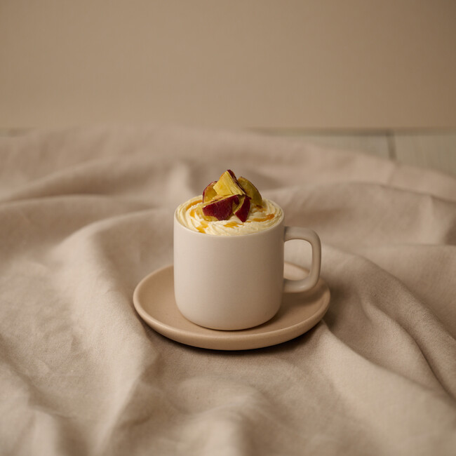 スパイスの効いたマサラチャイに、スイートポテトクリームとホイップを合わせた、くちどけなめらかなクリームとさつまいもをトッピングしました。シナモン・クローブ・カルダモンなど体を芯からあたためるスパイスを組み合わせた味わい深いマサラチャイに、まろやかでやさしい甘みのスイートポテトホイップが相性抜群。ホットでもアイスでも楽しめる、秋にぴったりのドリンクです。