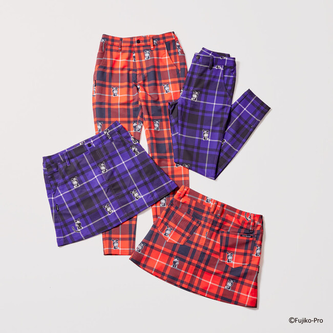 オリジナルのハイキング柄のデザインにはハットを被ったドラえもんが所々に配されたカモフラージュデザインのスタンドタイプ。タータンチェック柄にはゴルフをするドラえもんとドラミちゃんがデザインされた自立タイプで展開。