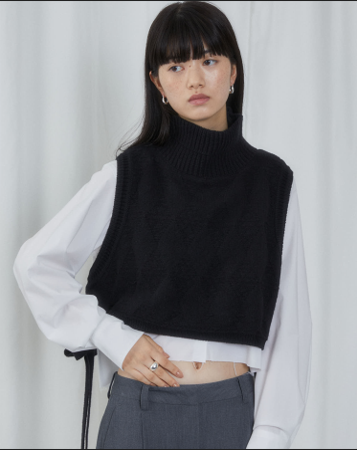 ANNUALオリジナルのアーガイル柄ニットを使用し、トレンドを感じられるショート丈のニットベストです。柄の表現も、一色の糸で編まれており、さりげない柄の表現が上品な印象を与えます。カットソーやシャツとのレイヤードの着こなしなど、様々なコーディネートを楽しむことができます。