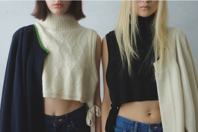 別注アイテムは、ANNUALオリジナルのアーガイル柄ニットを使用した「Argyle short vest」をはじめ「Moss Stitch Cardigan」、「Wrap Pullover」の計3型を展開いたします。
