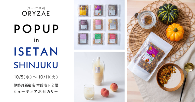株式会社アグクル(所在地:東京都品川区、代表取締役:小泉泰英)が展開する、“手軽に腸活”をテーマとしたフードコスメブランド「ORYZAE(オリゼ)」は、2022年10月5日(水)から10月11日(火)の7日間、伊勢丹新宿店 本館地下2階 ビューティアポセカリーにて、期間限定でポップアップショップを出店します。