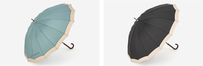 2019年に販売を開始し、累計販売数28,000本以上*と、KEYUCAの傘アイテムの中で1番人気の16本骨シリーズ。新色として、グリーンとブラックが仲間入りしました。開いた形も畳んだ形も美しい、丈夫な16本骨の傘です。8本骨よりも正円に近いため、覆う面積が多く安心感があります。親骨には、軽くて高強度のグラスファイバーを使用しているので、強度を保ちつつ軽さにもこだわっています。