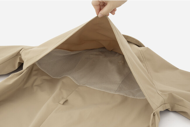 生地の表面には、耐久性のある撥水加工を施しているので、雨をしっかりと弾きます。