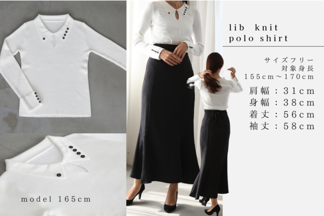 画像左:リブニットポロ (白/黒)¥12,800(税込)
