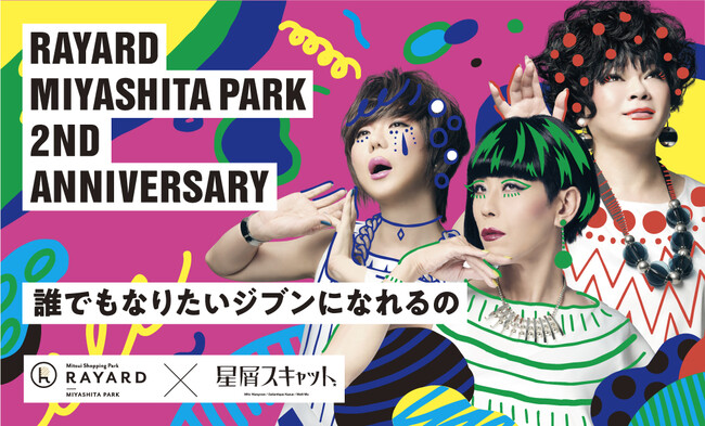 「RAYARD MIYASHITA PARK 2ND ANNIVERSARY」を記念し、音楽ユニット「星屑スキャット」とのコラボが決定!“誰でもなりたいジブンになれる”をテーマとした、3人のカラフルで華やかなビジュアルが館内各所でお楽しみいただけます。さらに、アニバーサリー期間に対象店舗でのお買上げレシート2,500円以上(税込・合算可)提示※で、豪華ギフトカードやショップアイテム、「星屑スキャット」のコラボノベルティグッズ等が当たる抽選会を実施します。