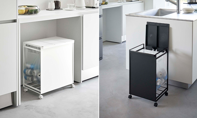 レジ袋を隠して分別できるスタイリッシュな蓋付き分別ダストワゴン。