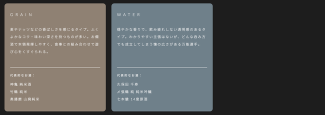 サケタイプについて:https://sakeflight.jp/sake_types