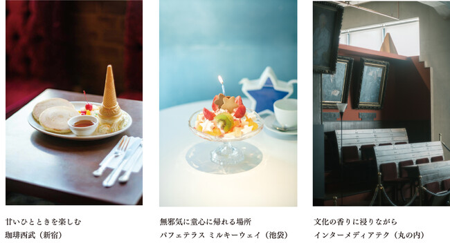 お気に入りの喫茶店や洋菓子店で過ごす「甘いひととき」、遊園地や駄菓子屋を無邪気に楽しんで「童心にかえる」、美術館に博物館、文学館……「文化の香り」に浸る時間、歴史ある名建築や東京らしさ溢れる老舗を味わう「クラシカルに」、「夜を過ごす」ための街の酒場、折り目正しきバー、ホテル、そして「永遠のあこがれ」文化人行きつけの贅沢な時間を味わえるスポットをご紹介。