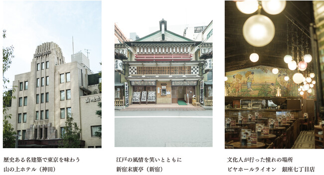 ・旧岩崎邸庭園 ・山の上ホテル ・カド ・旧古河庭園 ・煉瓦亭 ・金魚坂 ・土手の伊勢屋 ・ヨシカミ