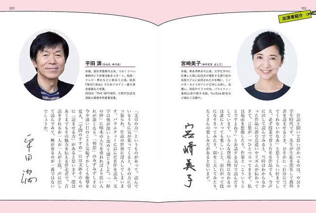 本作では、俳優の平田満さん、宮崎美子さんが音読するCDと冊子がセットになって発売されます。「手袋を買いに」「走れメロス」「ごんぎつね」ほか、気軽に楽しく読める44作品を収録しています。