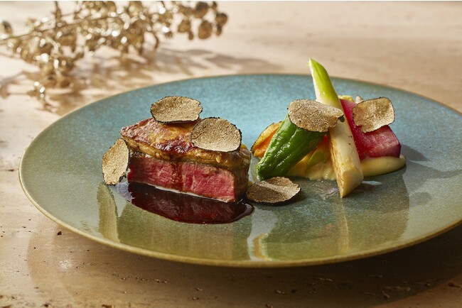 黒トリュフ香るソース」、デザートはパティシエがクリスマスの為に考案した特別デザートと