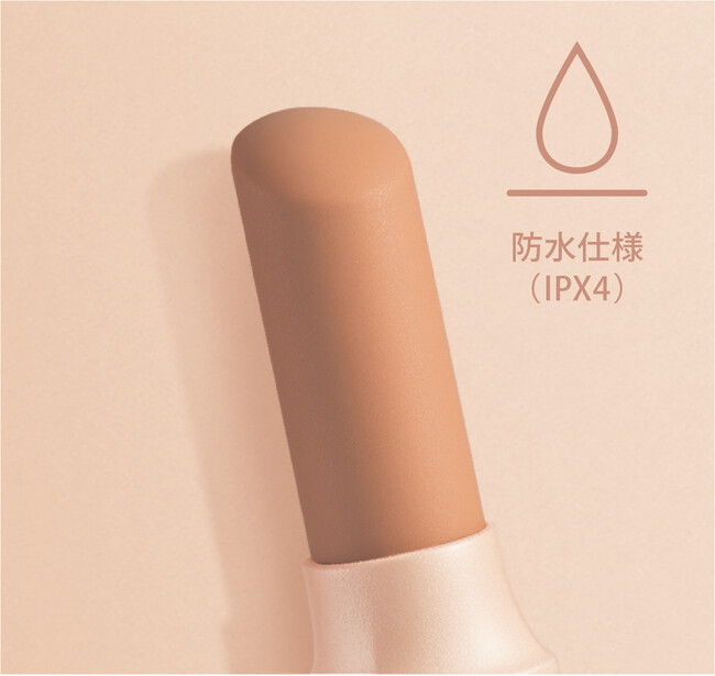 カラダに触れる部分には、サラサラの手触りで弾力のあるシリコン素材を採用。デリケートな部分にも安心してお使いいただけます。使用後は拭き取りが可能で、本体には防水加工(IPX4)も施されており、水しぶきがかかっても問題ありません。(完全防水ではありません)