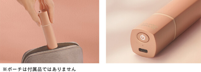 どこに持ち歩いても違和感のないリップ型デザインにしました。キャップ付きで気になる汚れを防ぎます。また、USB充電式で場所を選ばず使えます。