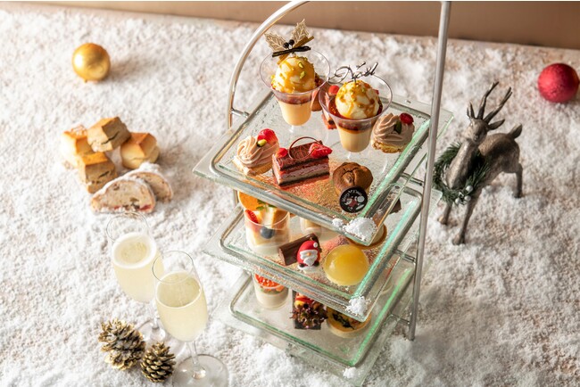 イギリスやフランス、ベルギーなど、インターコンチネンタルホテルが位置する地域や都市からヒントを得た、各国を代表する世界のスイーツが一同に会するアフタヌーンティー。クリスマスのデコレーションをまとった心躍るスイーツとともに、目の前に広がる海の景色を眺めながら、優雅なワールドクルーズ気分をお楽しみいただけます。
