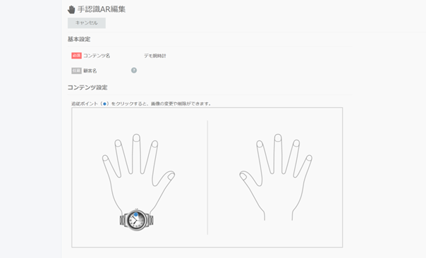 手の甲や手のひら、手首、指、爪など、指定した手のパーツにコンテンツをAR表示する機能です。例えばWEB上で購入を検討している指輪を自分の指に表示させれば、手を自由に動かしながら、さまざまな角度により実際の装着イメージを確認できます。