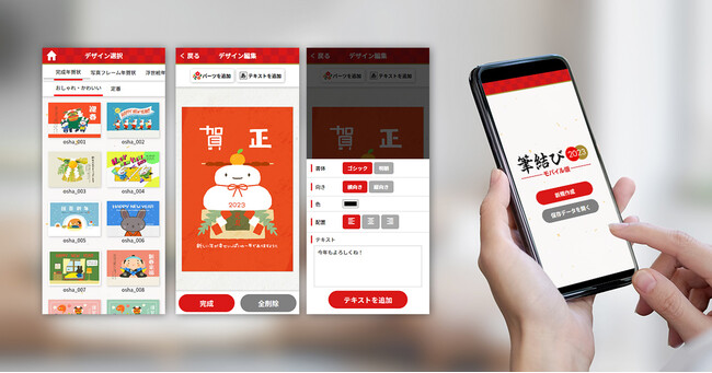 従来のPCで行うはがきデザインに加え、モバイル版を使用いただくことにより、スマホやタブレットでデザインすることが可能になりました。スマホで撮った写真をそのままデザインに取り込めるので、撮ってすぐにはがきを作成できて便利です。また、スマホならどこでも作業できるので、場所を選ばずに作業できるところも利点です。