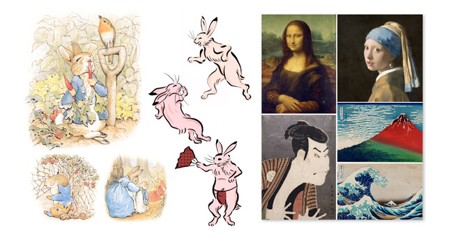 ■こだわりのデザイン素材。オリジナルのイラストに加え、「世界&日本の名画」や「うさぎ素材」を特典として厳選