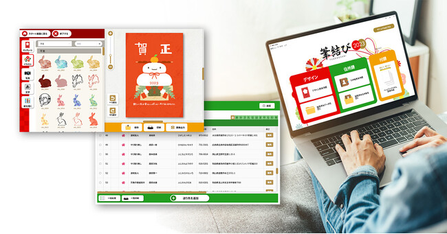 「筆結び2023」は他社製品と比べると、事実多機能ではありません。それは、多機能になればその分ユーザー側の操作が難しくなります。「筆結び 2023」は、多機能ではありませんが、はがきデザインに必要な機能はすべて搭載しています。例えば、デザイン素材を自在に動かし、写真を入れ、文字をきれいに自由に編集すること。宛名作成のための住所録は、わかりやすく表示され、かんたんに編集ができ、他社製品からの取り込みも可能です。さらに、宛名印刷もリストから一斉プリントができます。「筆結び 2023」は、シンプル設計で、使いやすいデザイン、住所録、宛名印刷の機能は余すところなく搭載されています。