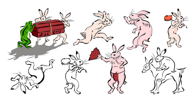 当社では、これまでも世界&日本の名画素材を集めたデザイン素材集(「センペンバンカ 世界&日本の名画」シリーズ)を扱ってきました。その中から厳選した100点を特典として「筆結び 2023」に盛り込みました。ゴッホやフェルメール、ダ・ヴィンチなど、誰もが知る名画を集めました。名画が持つ目を惹く力はそれ単体でも素晴らしいので、どんなデザインも格別の出来栄えに。作ることが一段と楽しくなることでしょう。この他にも、来年の干支となる兎にスポットを当て、有名な兎のモチーフを集めました。「ピーターラビット」や「鳥獣戯画」の兎など、可愛いイラストからユーモラスなイラストまで幅広い兎350点以上からお好きなデザインを選べます。また、児童書や絵本で活躍中のイラストレーター木村いこさんによる新作イラストも目玉です。