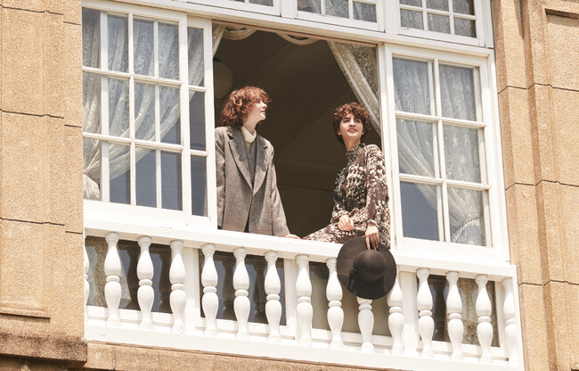 1976年の秋冬プレタポルテコレクションより、グレンチェックのコート・ジャケット・パンツの3ピースルック“旅する女性シリーズ”を復刻しました。また、馬を愛したオジャール氏にちなんで、ジオメトリックなホースモチーフプリントのドレスも同時発売します。当時のコレクションをアップデートしたクラシック&モードなスタイルを提案します。