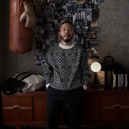 オリジナルテキスタイルの総柄ニット。素材は使用済みのペットボトルや衣料品、繊維くずを原料としたリサイクルポリエステル。ニットとは思えない驚きの軽さを感じていただけます。(税込¥24,200)