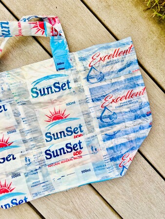 そこで、CLOUDYはこの袋でバッグを作ることにしました。このバッグによって、回収・洗浄・縫製の3つの過程で雇用が生まれ、ゴミを減らすことも出来ます。