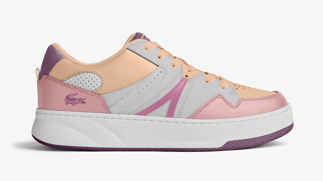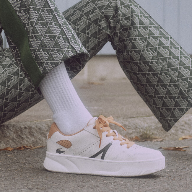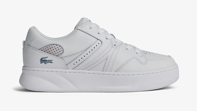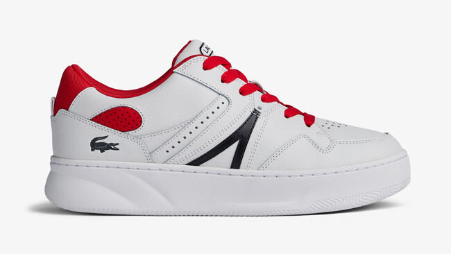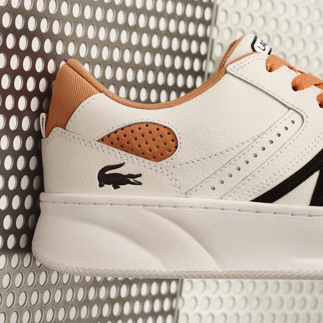 遊び心のあるレトロなムードを備えた現代的なスニーカーであるL ファミリーはすでに人気を博しており、先に発売されたモデルと同じく、このL005もラコステが歩んできたテニスとスニーカーの歴史の両方に対するリスペクトが表現されています。L001のチャームポイントであるボリューム感のあるシルエットを取り入れ、その上に新たな要素を加えています。レトロなフォルムとムードはL001同様、ブランド初のシューズ “Rene”をオマージュ。また、アッパーのサイドにある躍動感のある三角形のラインは1980年代のラコステのラケットハンドルを想起させ、さらに新たに加えられたディテールもテニスの世界への敬意を示しています。また、足首のちょうど下の部分にある曲線状の印象的なスウェードのウィンドウも特徴的で、これはL001にはない全く新しいディテールです。ウィンドウやレザーのアッパーの流線型パネルを横切るもう一つの主な特徴はミシン目のドットで、これらはラケットグリップを想起させます。