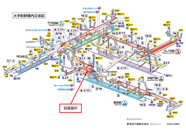 設置場所 :東京メトロ 東西線 大手町駅 西改札口出て左 ※最寄り地上出口:B1A/OOTEMORI付近