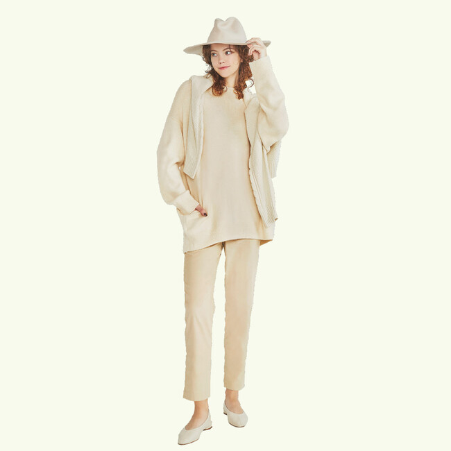 本誌ではクルーネックトップスとして着用したこのセーターを、ボタン付きのバックデザインをいかしてカーディガンに。ポケット付きなのも嬉しい!