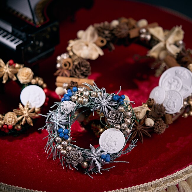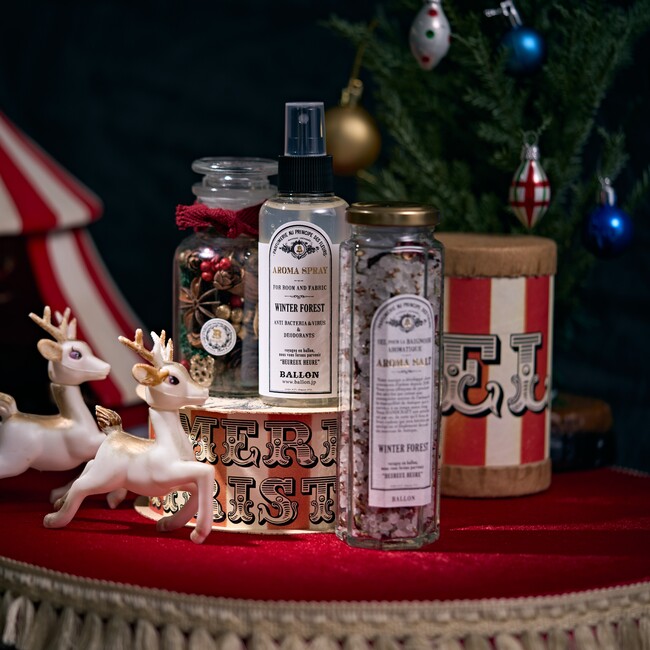 商品展開:限定クリスマスコフレ6種/アロマオーナメント2種/サシェオーナメント8種/アロマキャンドル/アロマバスソルト/アロマバスソルトギフトセット/アロマスプレー/ポプリ2種/クリスマスリース5種(サイズ2種)