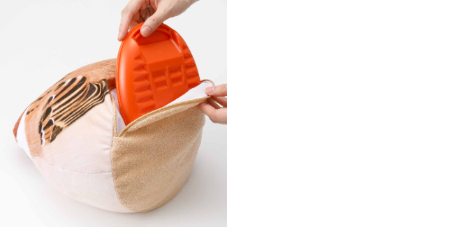 おなかの底面にはファスナー付きのポケットがあるので、湯たんぽなどを入れて使うこともできます。