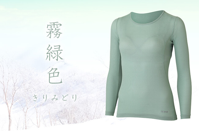 Men’sの定番アイテム、ロングスリーブは雪緑色(ゆきみどりいろ)。そして女性に定評のあるWomen’sブラトップロングスリーブは霧緑色(きりみどりいろ)。