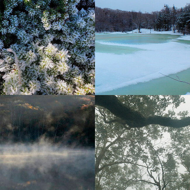 霧や朝もやに包まれた森、凍った湖、霜がおりた草木など、キリリと澄んだ冬景色をイメージした淡い緑。