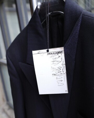 今回は“M.Y.PRO COLLECTION”のM.Y IMPERとORIGAMI BLAZER2型に、ネイビーのヘリンボーン生地を用いて、別注。