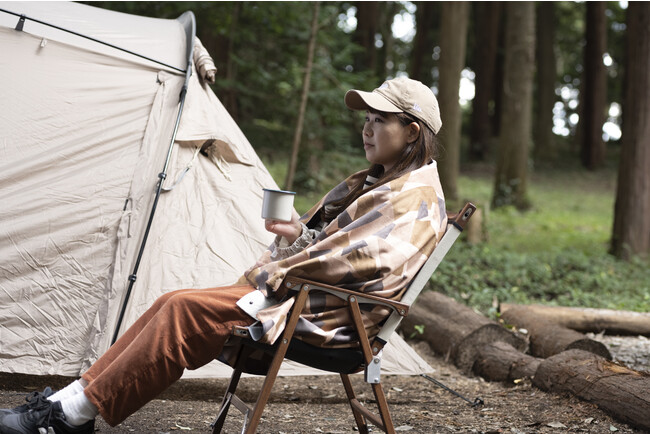 アウトドアや車中泊のシーンにおいて、ブランケットは重要なアイテムの一つです。膝掛けや肩掛けとしての使用だけでなく、寝袋の上から掛けたり、チェアカバーに使ったり、ラグ代わりに敷いたりと、防寒やインテリアなど、さまざまな役割を担います。