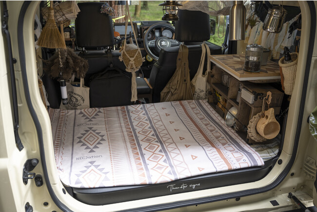 「オルテガ」はジムニーユーザーが集まる大型イベントを主催するジムニー女子インフルエンサーのKAHOさん(https://www.instagram.com/jimny2221/)と一緒に、ジムニー女子が思わず使いたくなるような柄を考案しました。シーズン問わず、普段使いからアウトドアや車中泊時のサポートアイテムとしてぜひご活用ください。