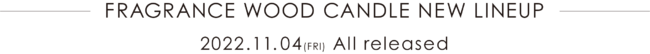 2022年11月4日(金)12:00より発売予定の、新フレグランスウッドキャンドル「GINIC(ジニック) / LOWVER(ローヴァー) / BLENCOF(ブレンコフ)」をイベント会場にて先行発売を行います。