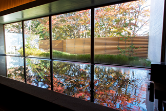 グランヴォー スパ ヴィレッジ内にある黒湯が特徴的な天然温泉「紅葉乃湯」がご利用可能。地下600mから湧出するミネラル分の豊富なとろとろのお湯は“美肌の湯”とも称されており、露天風呂付きで楽しめる。