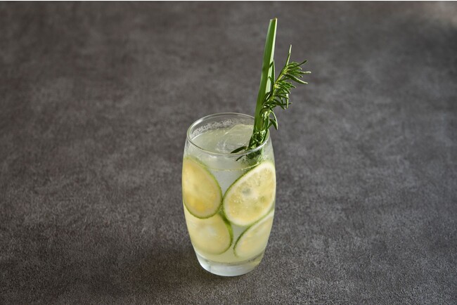 「グランヴォースパ ヴィレッジ」内にあるBARもみじでは、ハーブカクテル「「Healing Herb」(モクテルに変更可能)も1杯無料でご提供。京都の「季の美」というジンをベースに地元“長生村”のシソのリキュール、八街産のジンジャーエールとトニックウォーターを加えた一品。国産のカボスとレモングラス、ローズマリーを添え、ハーブの香りに癒されるオリジナルハーブカクテル。